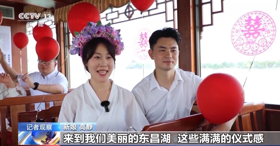 新娘 高静:我觉得今天特别有意义,来到美丽的东昌湖,这些满满的仪式感,这些优秀的传统文化,我特别喜欢。