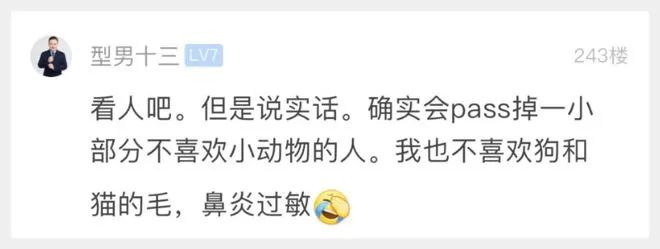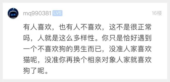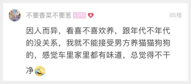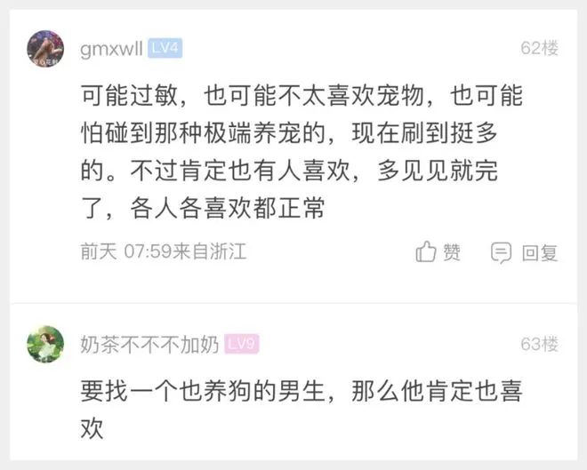 有的还搞笑地表示“那自己也要去养只狗”;当然更多的网友很理性地分析,认为这和什么年代没有关系,只是正常的个人喜好问题,甚至可能是因为对方存在过敏体质等原因。