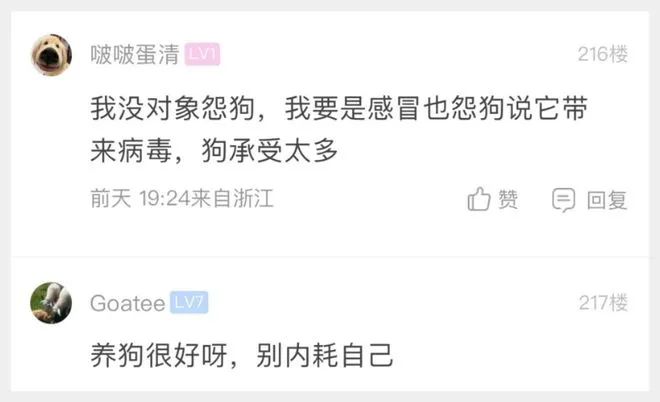 女生的发文,也引起网友各种评论,有的搞笑地对狗表示同情,觉得最近可能会“不受待见”了;有的表示自己也遇到过这种情况,受到了来自“老妈的数落”。
