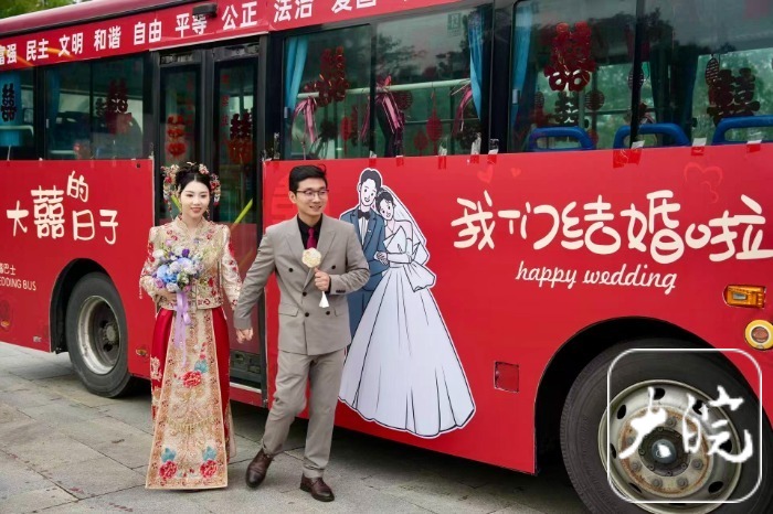 在面对婚礼形式时,上一辈人和新人的想法往往有不少冲突。自古以来,中国人对婚礼都极为重视,“风光出嫁”的观念烙印在老一辈心中,但小江和晶晶的父母对“公交车”接亲的想法非常赞同。“我们非常尊重孩子的想法,公交车接亲非常环保又节约,我们都很支持。”新娘爸爸詹先生说道。