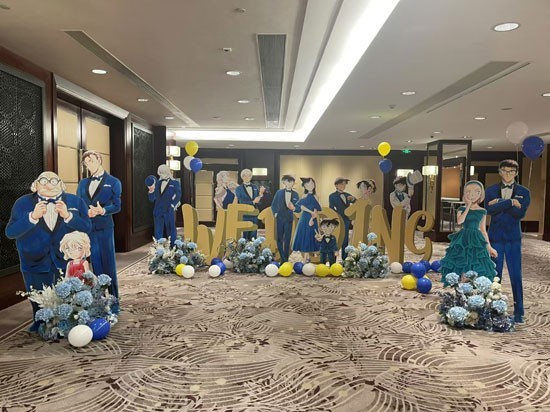 王韵瑶婚礼迎宾区,《名侦探柯南》角色列队欢迎。受访者供图