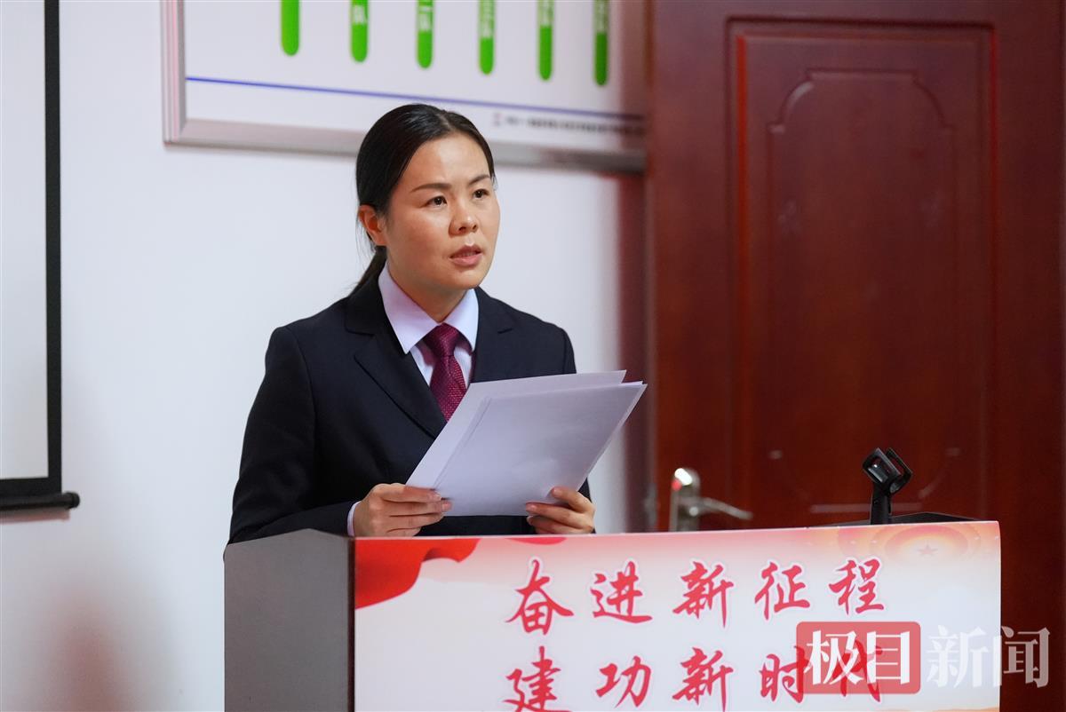 姚婕从参加“大会的情况、体会与感想和把宏伟蓝图变成壮美现实”三个部分,进行了交流分享。她讲述到:会议期间,湖北代表团参观了“奋进新时代”主题成就展。展览紧扣“奋进新时代”这一主题,聚焦新时代十年党和国家事业的伟大成就、伟大变革。漫步展厅,我深切体会到神州大地处处涌动着生机与活力、升腾着希望与梦想,这正是千千万万共产党员秉持“不负人民”之心而作出的坚守与奋斗,汇聚成新时代中国昂扬奋进的洪流。