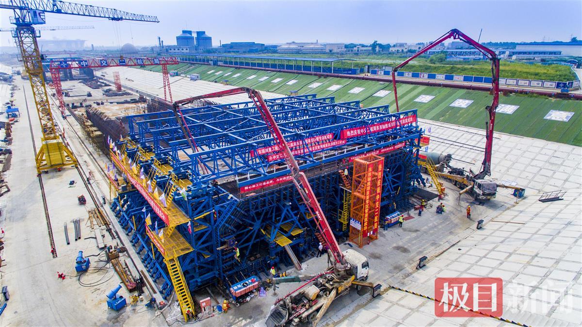 沉管隧道由东汊660米6节沉管和西汊351米4节沉管组成,平均单个管节重约2.7万吨,相当于一艘“小型航母”。伴随着一节节预制沉管迅速成长的,是由中交二航局下属中交武港院团队自主设计研发、获得7项国家专利授权的“秘密武器”——“智慧移动工厂”。它能实现沉管预制标准化流水线式样作业,实现施工流程中各个环节无缝连接,大幅提高施工工效,有效缩短沉管预制工期,提升整体施工品质。