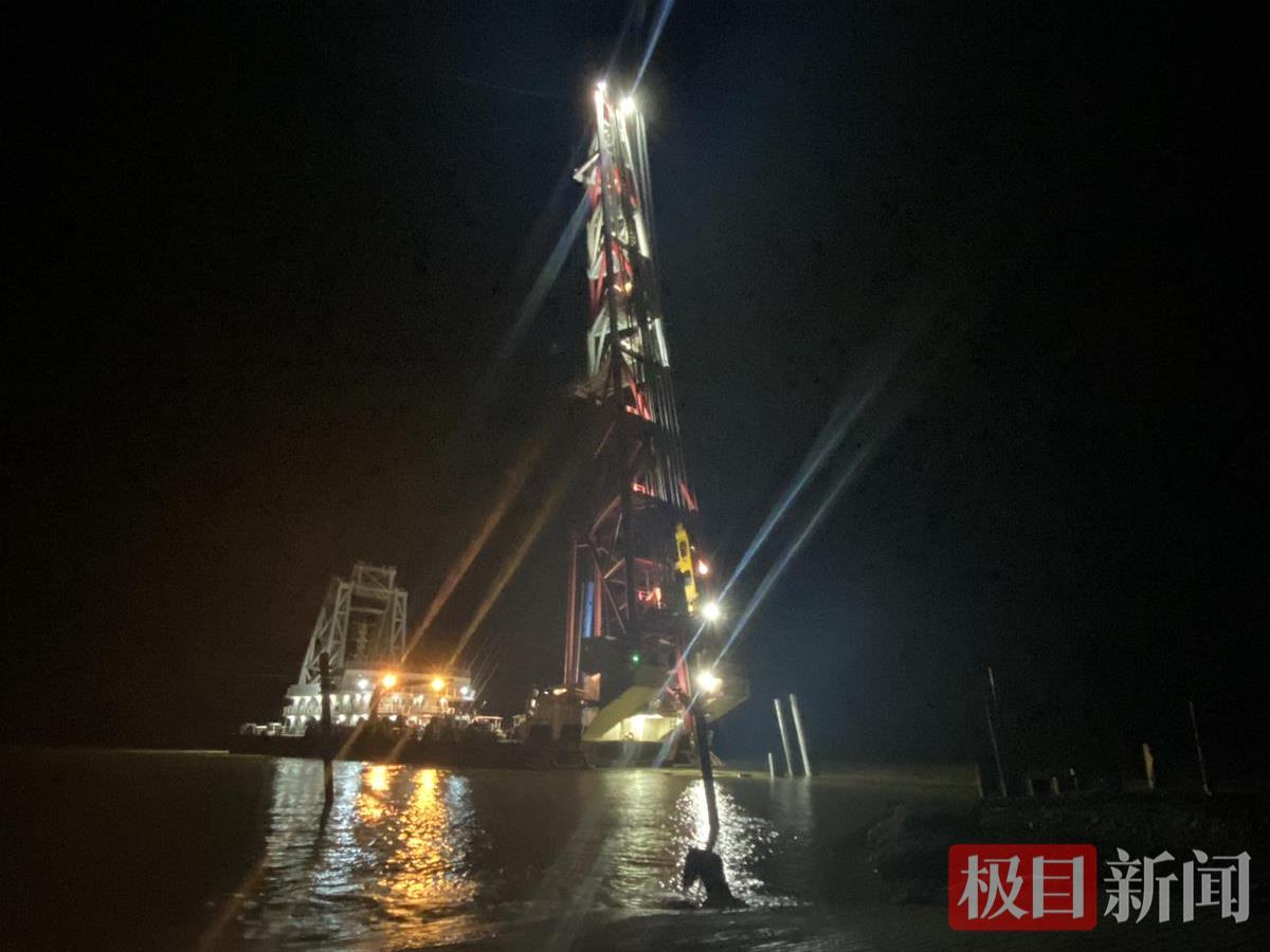 为了解决这些难题,项目团队大胆创新,采用大桥局自有重器“大桥海威951”号超大型打桩船对水中PHC管桩实施整根插打,于2021年9月27日完成首根直径1米、长90米的超长PHC试验桩插打。