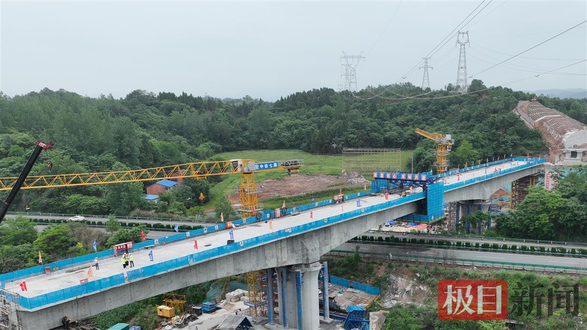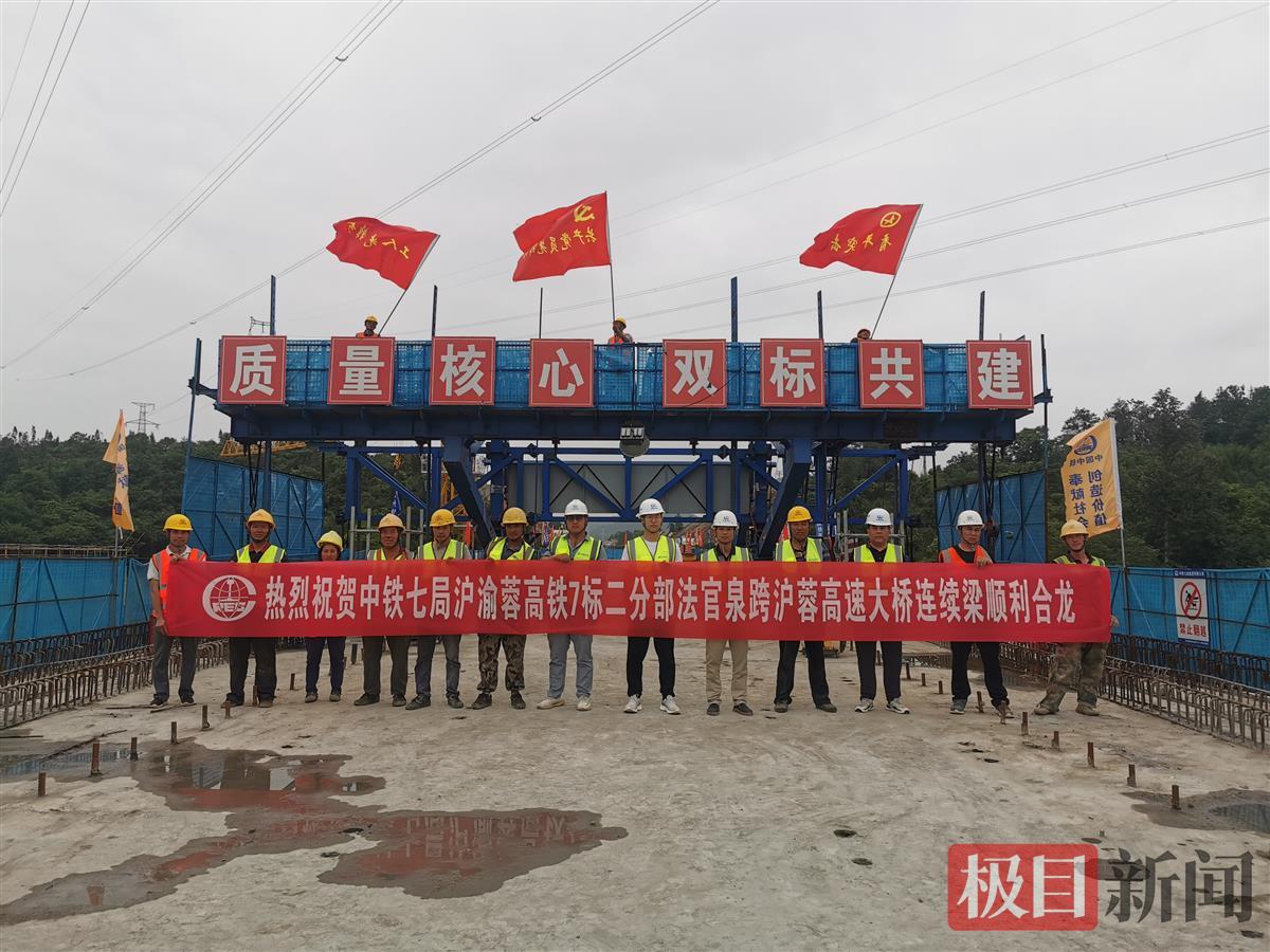 5月29日,由长江沿岸铁路集团建设管理、中铁七局承建的沪渝蓉高铁武宜段法官泉跨沪蓉高速大桥连续梁顺利合龙。极目新闻记者获悉,这是沪渝蓉高铁武宜段首座合龙的跨高速公路连续梁,标志着项目建设又一重难点控制性工程取得突破性进展。