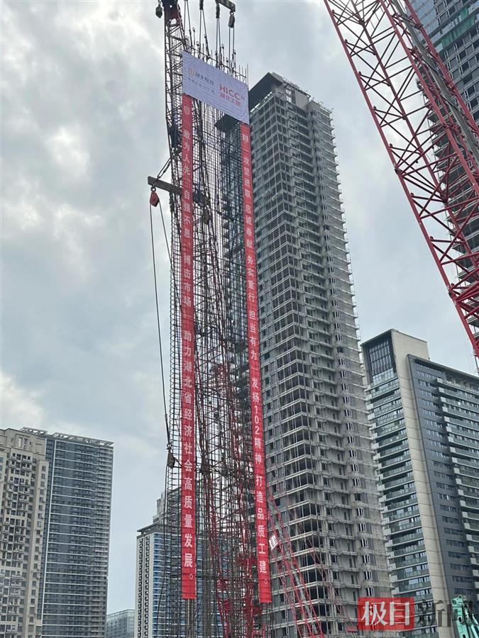 湖北工建党委委员、副总经理、总工程师肖仲华表示,该项目创下了湖北工建施工建设的“多项第一”:第一个地连墙成槽深度最高达68米的项目、第一个距离江边仅52米的项目、第一个贴近地铁红线的项目,也将是第一个应用造楼机的项目。