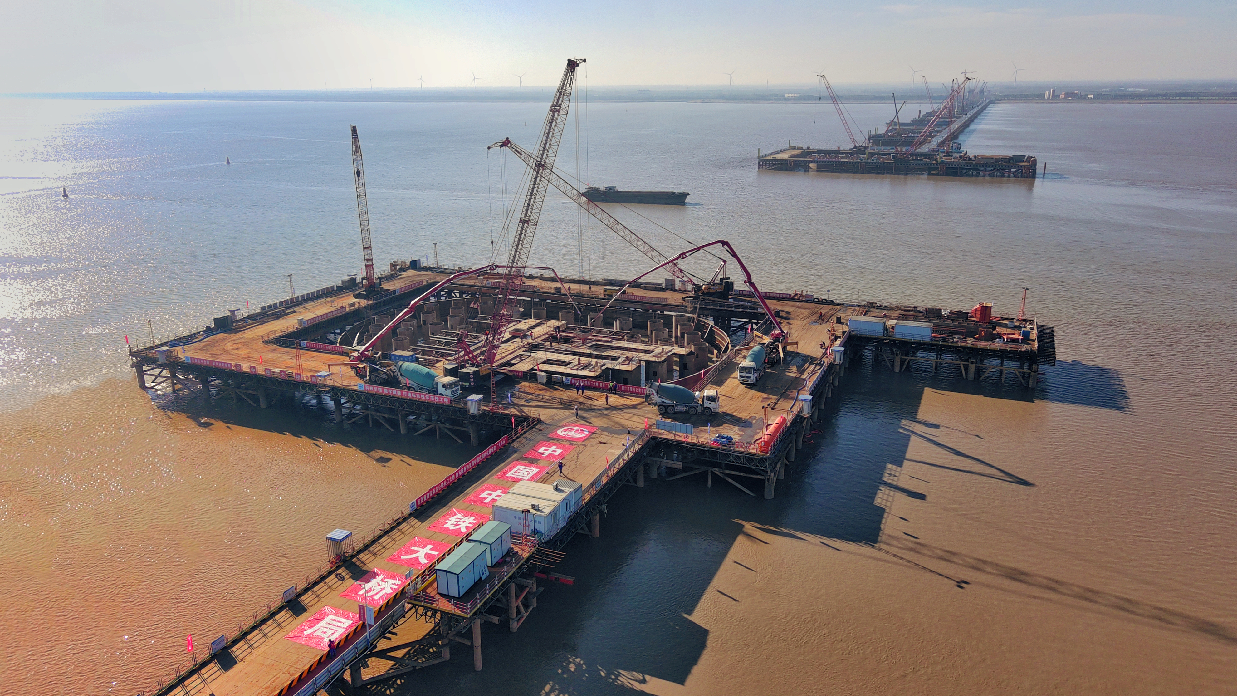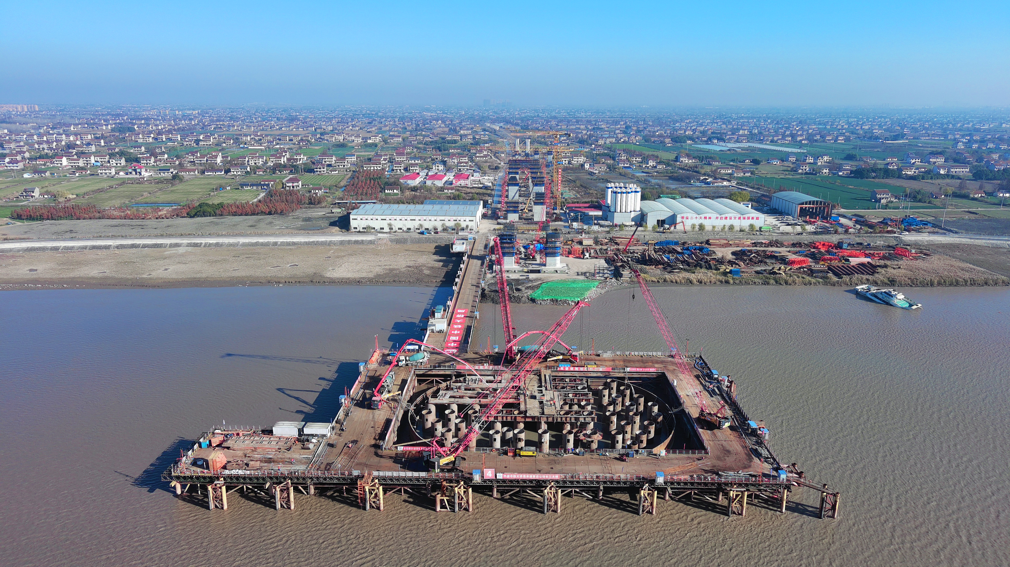据了解,崇启公铁长江大桥为世界上在建的最大跨度双塔双索面公铁两用无砟轨道斜拉桥,是上海至南京至合肥高速铁路重点控制性工程,由沪杭客专公司建设管理,中铁大桥局承建。该桥全长4.09公里,主跨400米,横跨长江入海口北支航道,主通航孔桥3号墩、4号墩分别为南主塔基、北主塔基。此次施工作业的4号主墩为该桥北主塔基,靠近启东一侧。