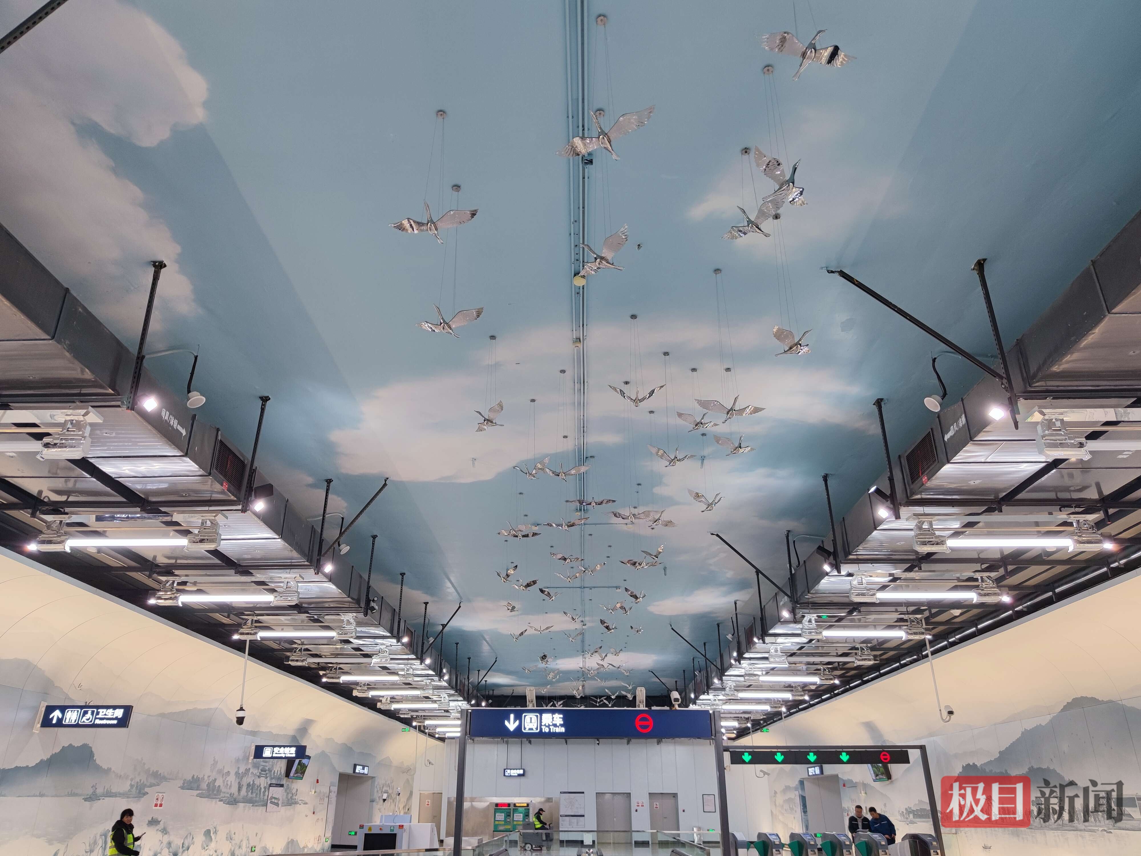 花山新城站顶部的吊装飞鸟