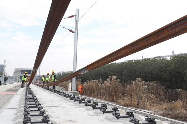 当日,随着铺轨牵引车引导的两根500米长钢轨缓缓落入扣件承轨台,由上海申铁投资建设、中铁二十四局承建的上海市域铁路机场联络线轨道铺设工作正式启动。机场联络线全长68.6公里,途经闵行、徐汇、浦东新区3个行政区,全线共设9座车站,列车最高运行时速可达160公里。项目建成后,虹桥和浦东两大综合交通枢纽间运行时间可控制在40分钟左右,与多条既有及在建轨道交通实现换乘,方便沿线市民和旅客出行。