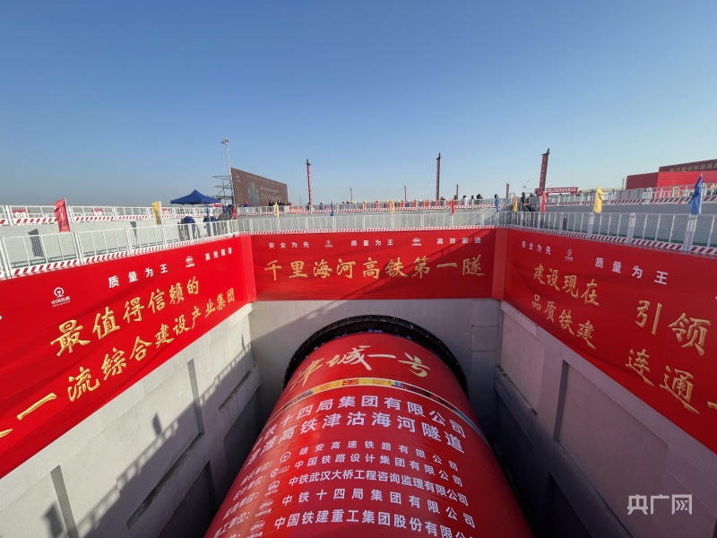 津沽海河隧道“津城1号”盾构机始发现场(央广网记者 韩雨晨 摄)