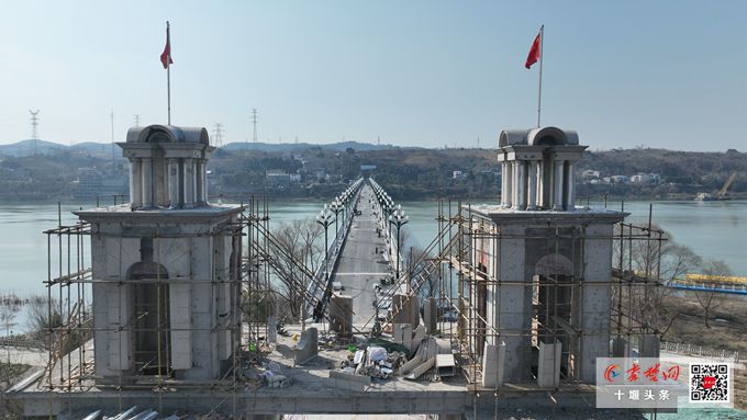 据了解,目前均州大桥挂梁更换、桥面铺装、伸缩缝、桥头堡主体等工作均已全部完成,路灯、栏杆安装以及桥头堡装修也都接近尾声,场地清理也在同步进行中。