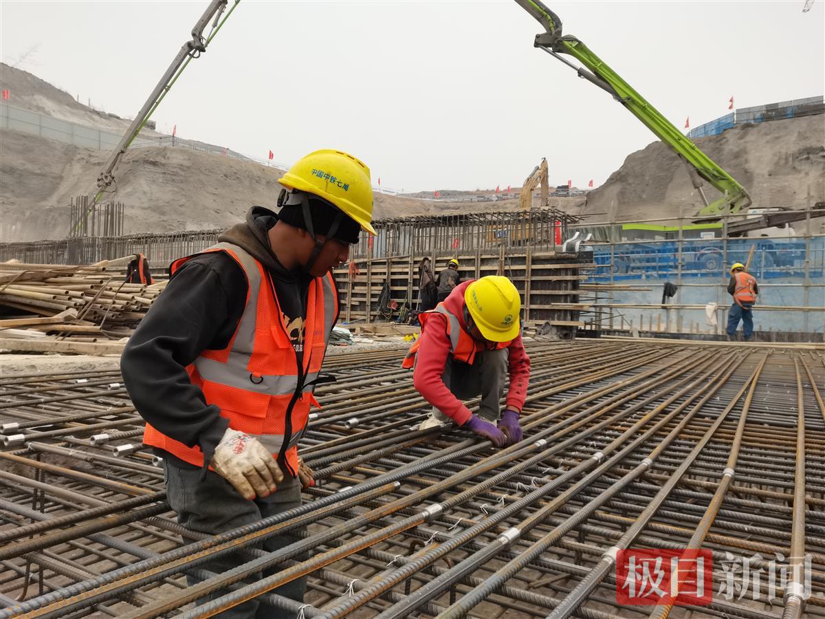 施工现场寒风呼啸,来自四川凉山31岁的钢筋工的日木呷日忙个不停。见记者靠近打招呼,他微微一笑表示,其从19岁就开始到建筑工地干活,今年打算留守项目,家里有3个女儿开销大,自己想多挣点钱补贴家用。“每天闲暇时会和家人视频聊天,在项目上有老乡,大家在工作和生活上都相互照应。”