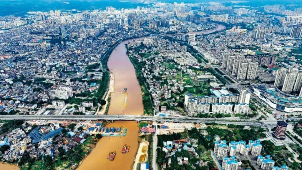 2023年12月24日,平陆运河流经钦州市区的河道。图/新华