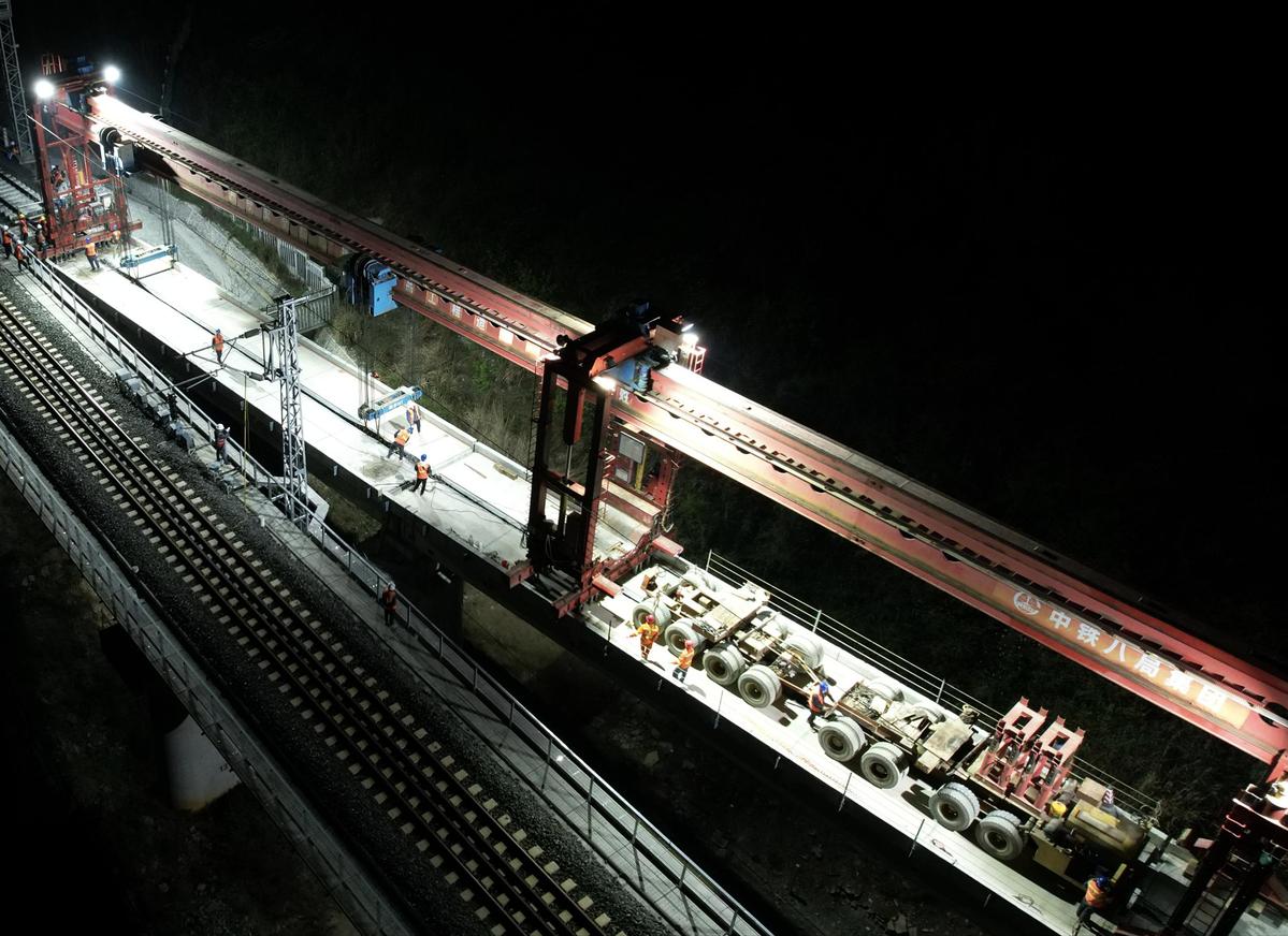 3月28日23点48分,随着兰花坡特大桥最后一片预制T梁缓缓落下,由中铁八局负责施工的贵阳至南宁铁路客运专线引入贵阳枢纽工程贵安段预制T梁架设任务圆满完成,标志着项目全面进入有砟轨道施工阶段,贵安站加入贵南高铁正式进入倒计时。