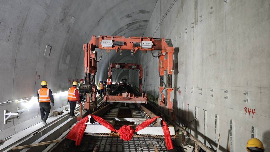 璧铜线最后一组轨排吊装到位。