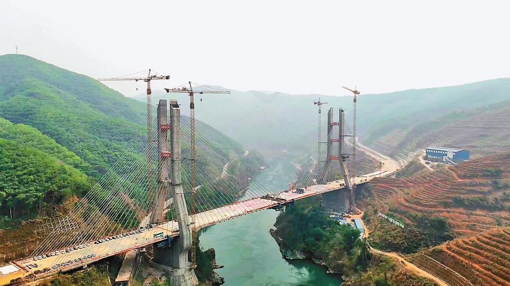 该项目由云南建投集团投资建设、云南省铁路集团有限公司负责施工。在桥梁承台、主塔、主梁、挂索施工过程中,项目研发了大体积承台混凝土施工技术,索塔异形横梁悬臂端少支架现浇法,受限空间条件下斜拉桥超宽长平台前支点牵索挂篮设计与支架法安装技术,多变、异形、大斜率斜拉桥索塔劲性骨架设计与施工技术,索塔横梁异步施工工况下宽幅PC斜拉桥塔梁同步施工等技术,实现了多项技术突破。(云南日报记者戴振华)