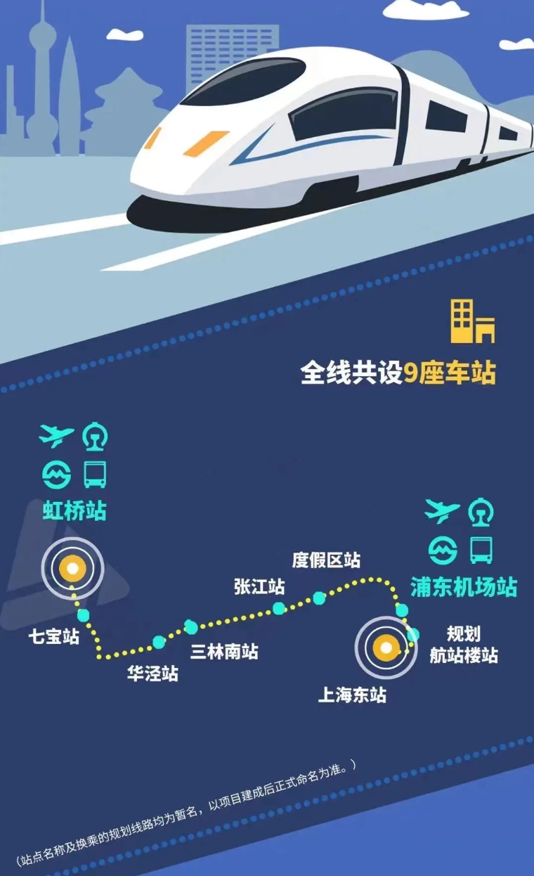 机场联络线是上海首条预留与国铁互联互通条件的市域铁路,虹桥站至浦东机场站计划于2024年底建成。它的建成将实现虹桥国际机场与浦东国际机场快速联系,届时两大综合交通枢纽间运行时间可控制在40分钟左右,与多条既有及在建轨道交通线(含市域线、磁浮)换乘,方便沿线市民和旅客出行。