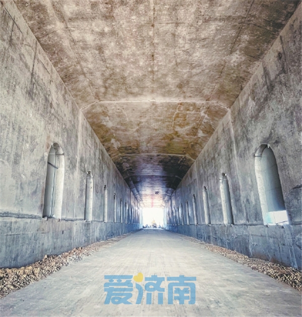 为了确保输电线路大动脉畅通和高铁的安全运营,经过专家评审论证,在特高压输电线路下方采用增设棚洞遮护的方案。该棚洞为矩形箱型结构,设计为现浇施工,长139米,宽14米,高11.54米,基础采用直径1米钻孔灌注桩,共计46根。棚洞施工的顺利完成,不仅有效保障了特高压电力设备的安全稳定运行,也为同类施工积累了经验。(济南日报记者:郭尧摄)