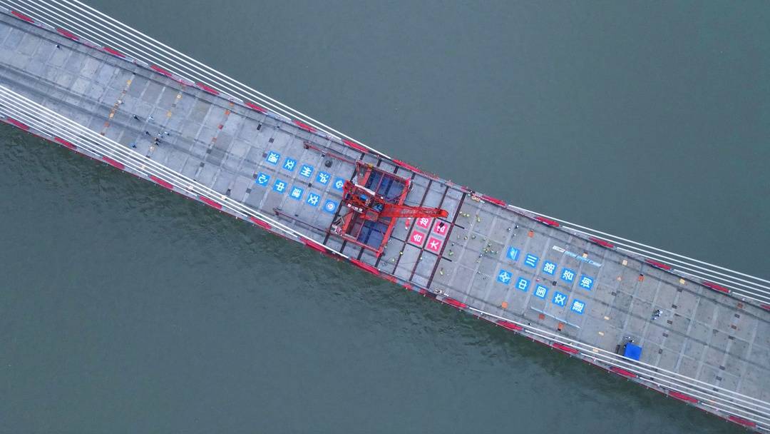 据介绍,榕山长江大桥项目开工以来,各参建单位克服了多重挑战,成功攻克了全国首个类喀斯特地貌河床复杂地质条件下埋置承台围堰施工难题,填补了国内外在该领域的施工空白。大桥合龙后,将进入桥面系及附属工程的施工,预计今年8月份完工并具备通车条件。