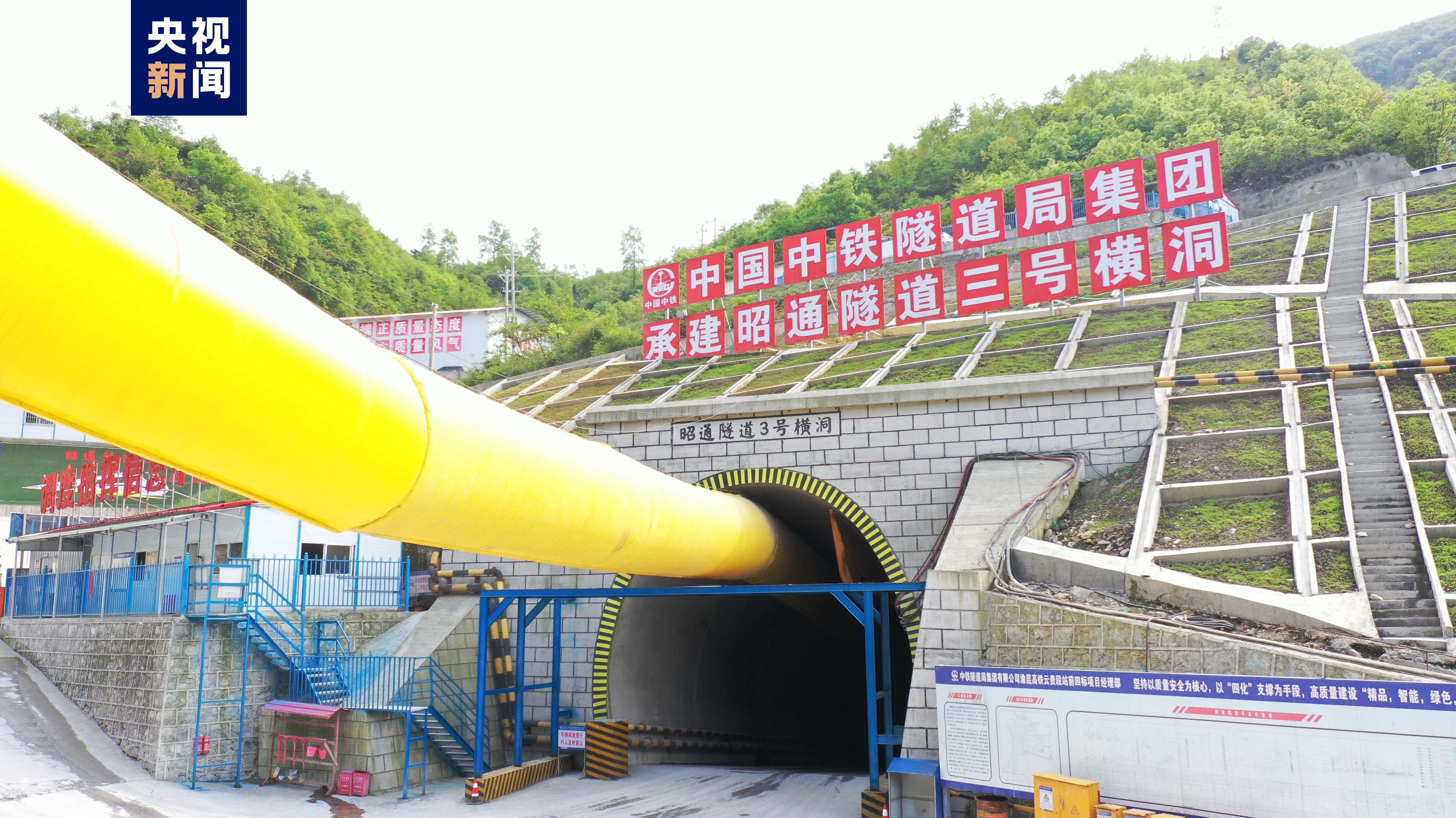 渝昆高铁昭通隧道进口在彝良县洛泽河镇太平村,出口在昭阳区,洞宽12.6米,拱高8.78米,全长16.26千米,从海拔1536.05米起坡爬行到海拔2023.85米,纵坡达3%,设计时速为350千米。途经喀斯特地形溶洞、高瓦斯煤层、软土层等地质环境,属Ⅰ级高风险隧道,是渝昆高铁全线头号控制性工程,目前正洞累计已经开挖了8千米左右,三号横洞抵达正洞后将同时往重庆方向和昆明方向开挖,与其他横洞和斜井一起施工后,将进一步加快正洞的施工进度。
