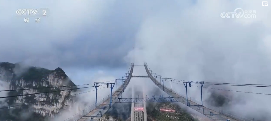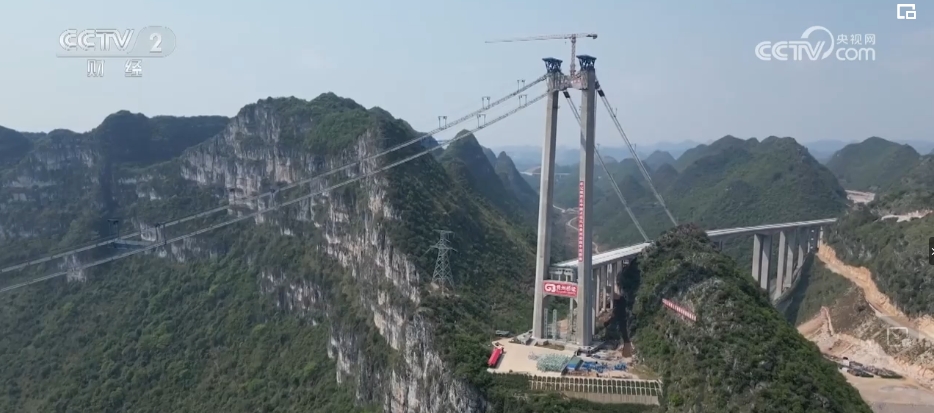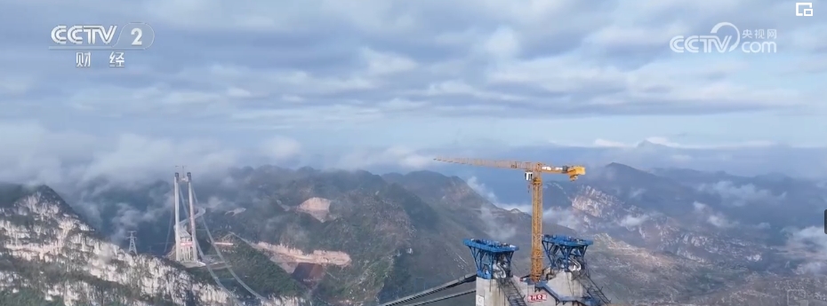 央视网消息:由于独特的自然地貌,贵州是世界上特大峡谷桥分布最密集、数量最多的地区。目前,世界前100座高桥中,近一半在贵州。“五一”期间,在建的世界第一高桥花江峡谷大桥仍在加紧施工。大桥建在被称为“地球裂缝”的花江大峡谷之上,全长2890米、主跨1420米,桥面与水面垂直高度达625米,相当于200多层楼。建成后,驾车横穿峡谷的时间将从两个小时缩短至两分钟。目前,大桥正在进行主缆架设工作。