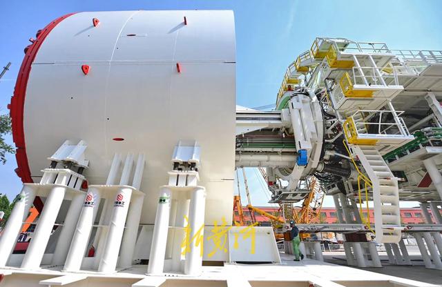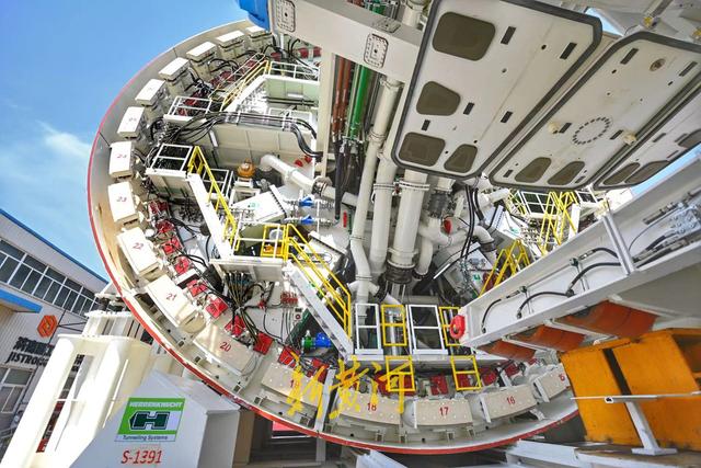 针对项目情况量身定制的这台“山河号”泥水平衡盾构机,最大开挖直径17.5米,盾构机总长163米、重约5200吨、装机总功率12580千瓦;配备各类型开挖刀具共计306把,其中57把具备滚齿互换功能,以优化其在多变地层中的作业性能;装配带压复合型刀盘、伸缩式主驱动、泥水仓伸缩摄像头;搭载刀盘磨损自动监测、设备状态在线监测和“五官一脑”智能化装备系统,并通过大盾构云智慧平台实现远程操控,以保证掘进安全和效率。