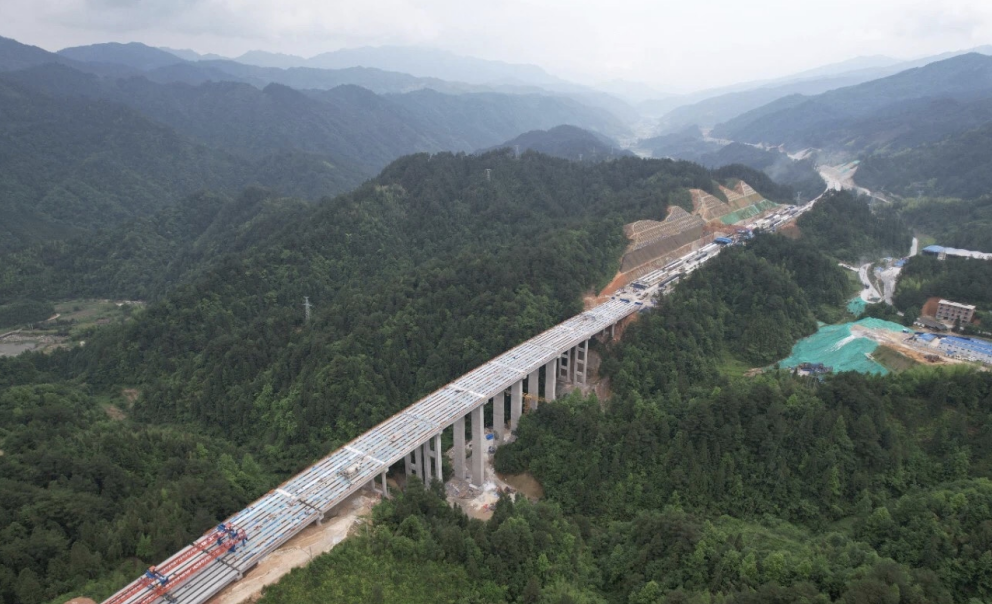 城龙高速三标上里水河大桥全幅贯通(胡鑫摄)
