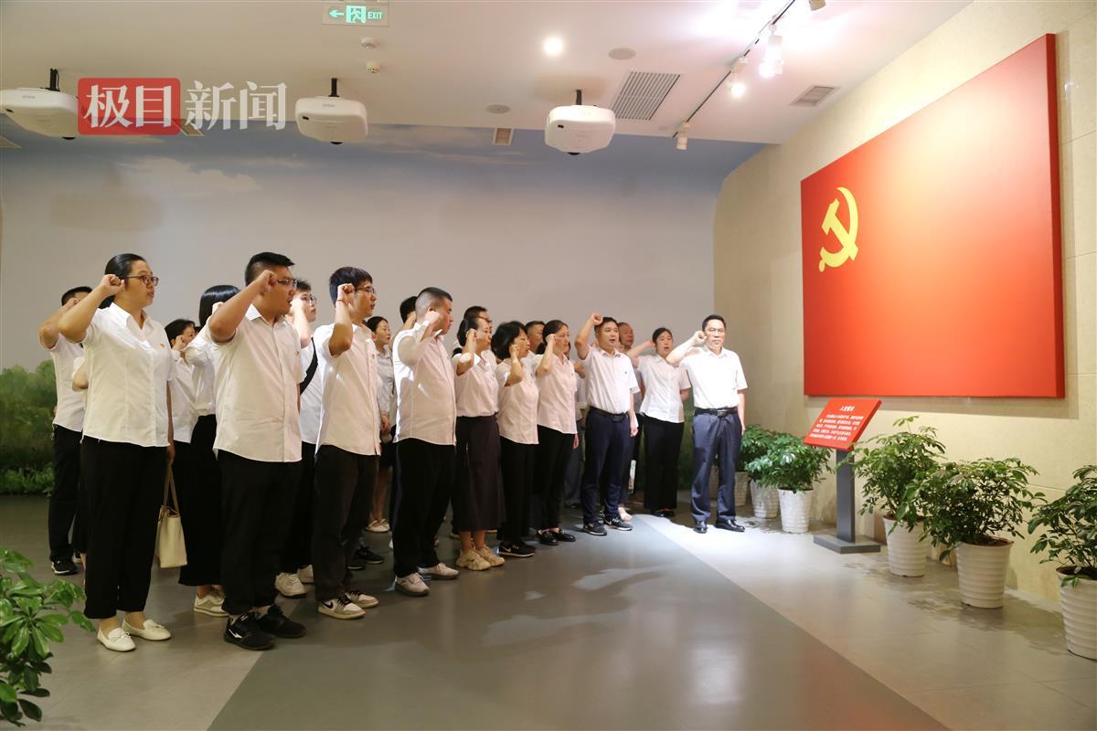 在陈列馆内,全体党员面向党旗,重温入党誓词,进一步坚定理想信念,铭记初心使命。随后在讲解员的带领下,全体党员参观了“创立与探索”“推进与曲折”“恢复与发展”和“新时代新征程”主题展览。