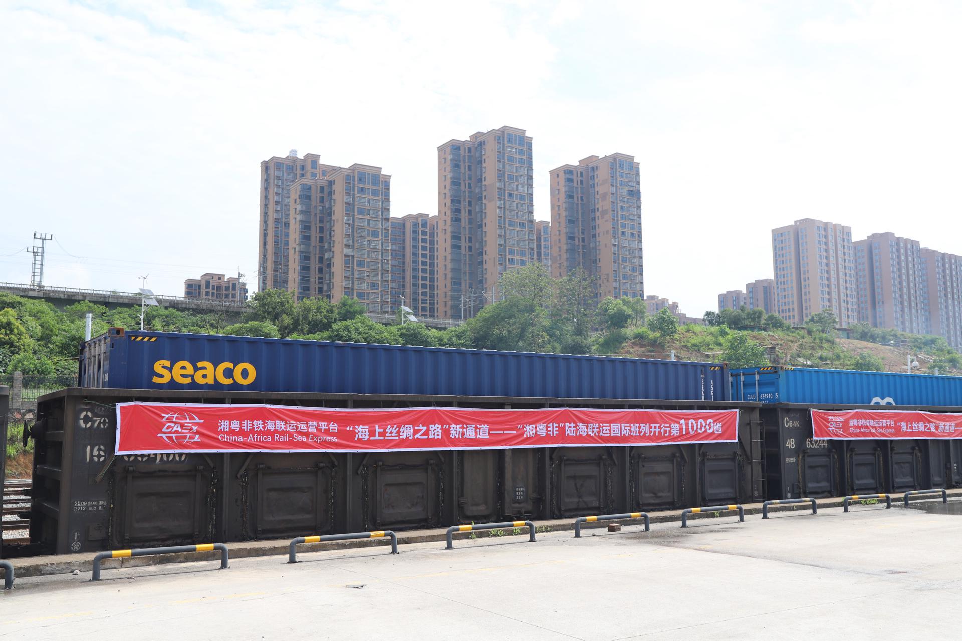 “湘粤非”通道自2021年9月15日首发至今合计发运1000列,年运量成倍增长,预计2024全年完成4.1万TEU(标准箱),合计500列。