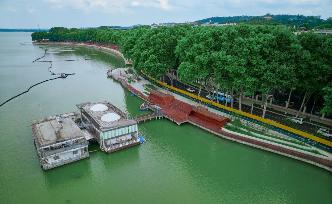 不仅在双湖桥至东湖南路一棵树3.45公里沿岸向水域延伸20米处设置有防水围隔,还在围隔内外5米处、郭郑湖2处国控点跟踪监测。