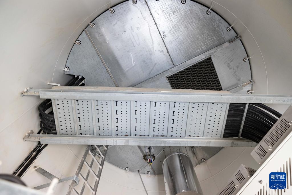 这是6月25日在哈萨克斯坦阿拉木图州谢列克风电场拍摄的风机第一级平台。新华社记者白雪骐摄