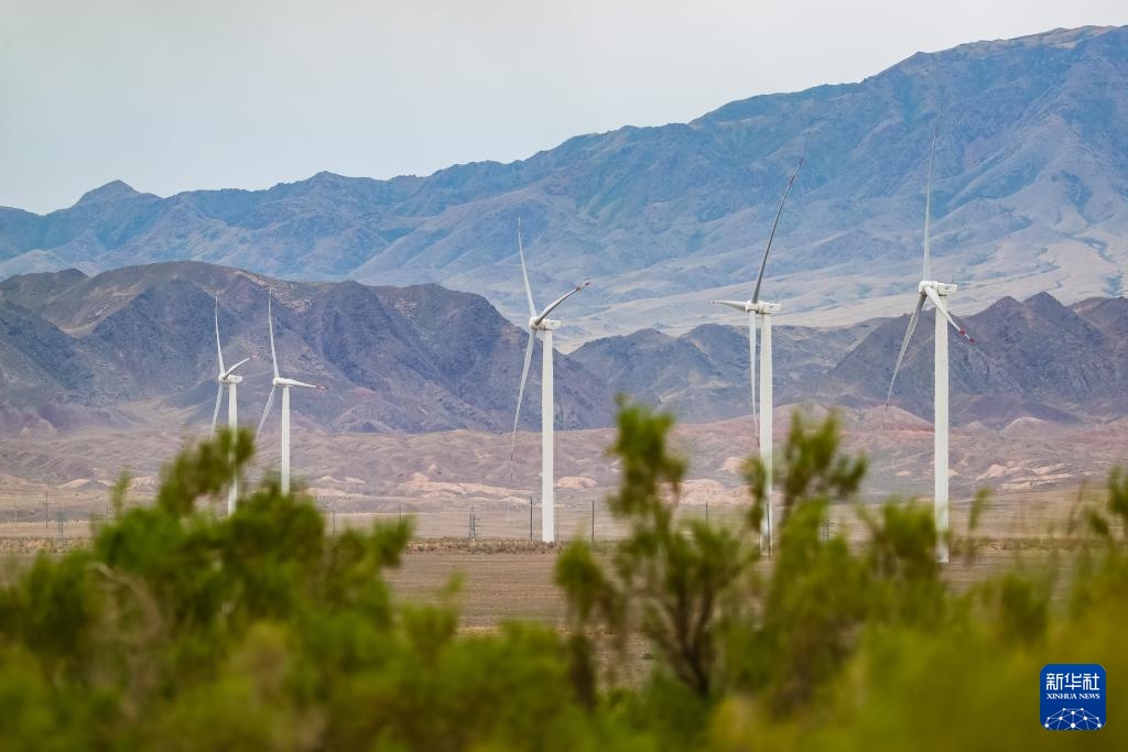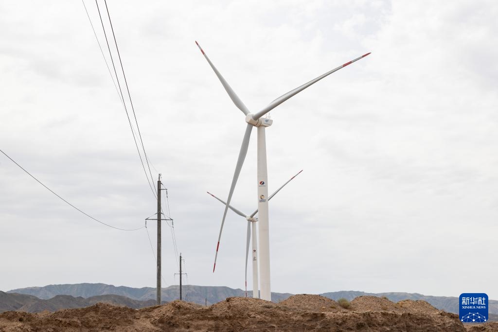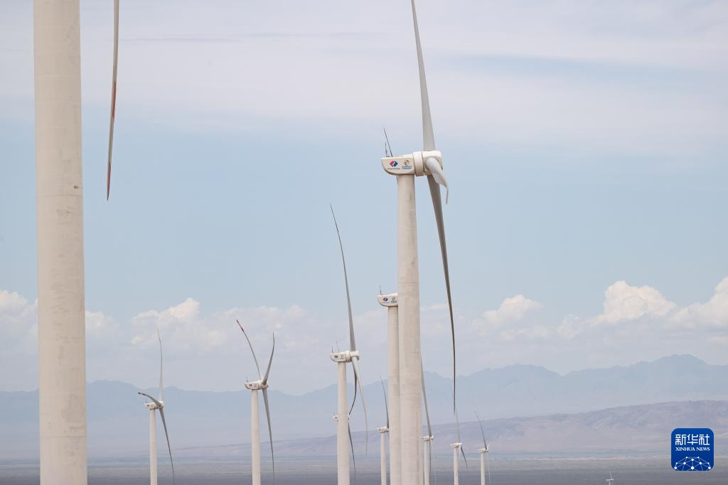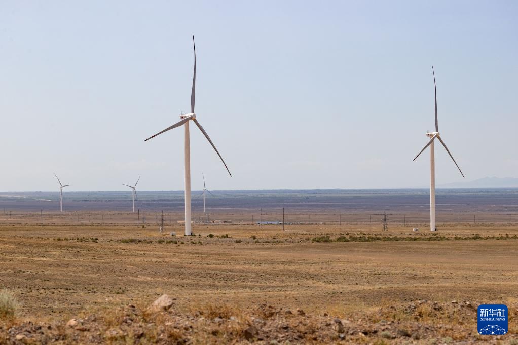 这是6月25日在哈萨克斯坦阿拉木图州谢列克风电场拍摄的风机。新华社记者白雪骐摄