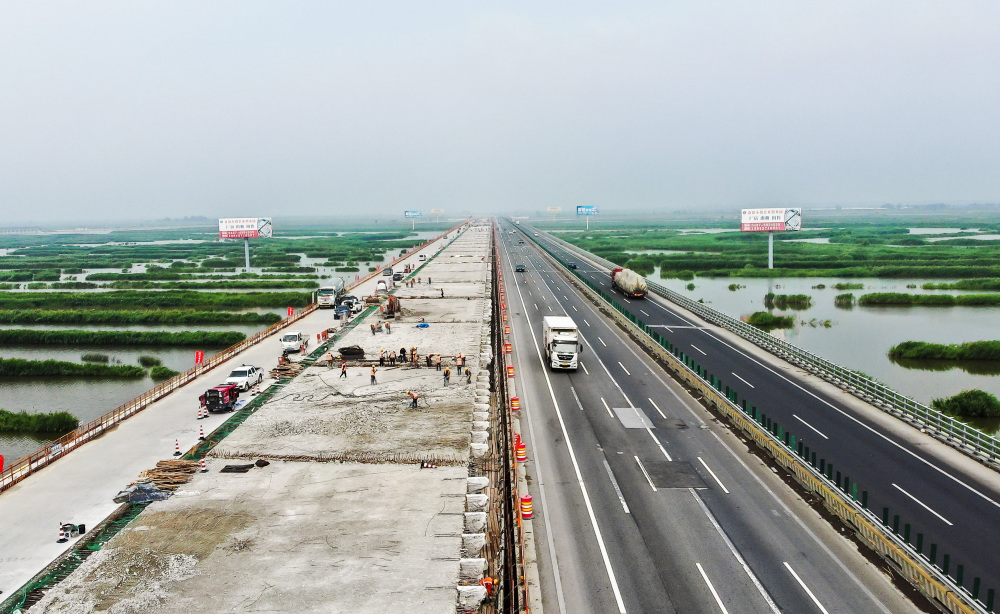 近日,在辽宁盘锦的京哈高速公路辽宁段改扩建工程项目施工现场,各项工程按照施工节点要求稳步推进。截至6月底,京哈高速辽宁段改扩建工程今年已完成投资40.8亿元,占项目年度投资额的72.2%。路基工程累计完成91%,桥梁工程累计完成75%,隧道工程累计完成64%,房建工程累计完成53%,实现年度投资、工程进度“双过半”。