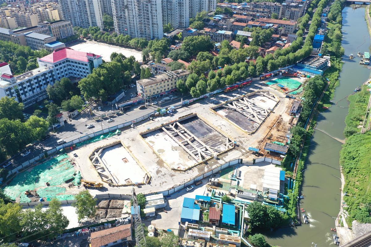 巡司河流域综合治理二期工程位于武昌老城区,2#调蓄池紧邻110千伏的高压线、京广线、巡司河及城市道路,项目部采用1.5米厚的地连墙加四道混凝土支撑,有效保障了基坑稳定,同时设置自动化监测和配合人工监测,实时对基坑变形、铁路及周边构筑物沉降位移进行监测。