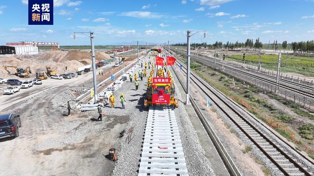 8月11日15时,在巴彦淖尔市乌拉特前旗西站至五原东站区间施工现场,随着中铁十一局建设者将首对500米长钢轨平稳落放在承轨槽中,标志着包银高铁内蒙古段进入轨道工程施工阶段。