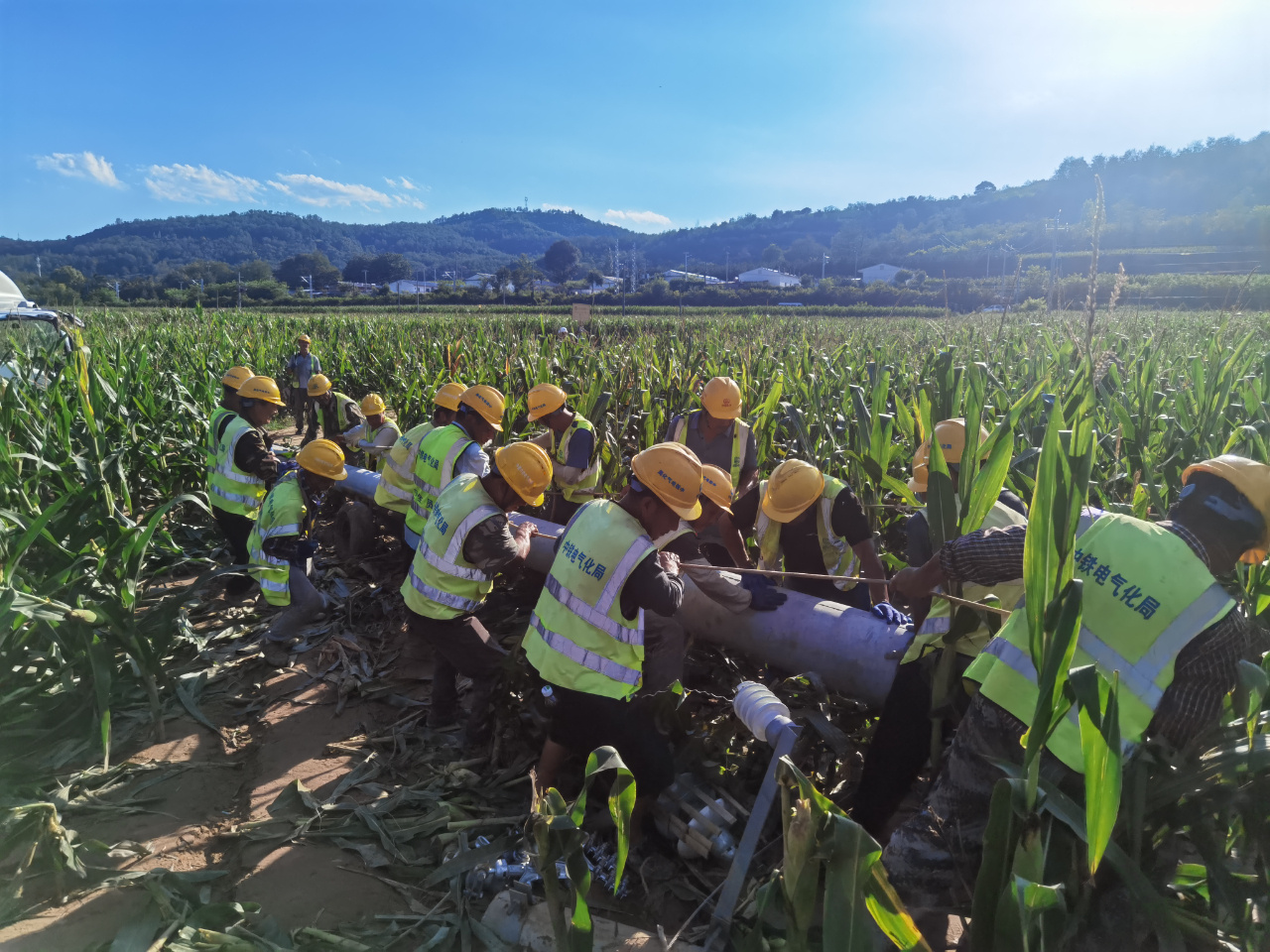 8月9日22时,中铁电气化局西安电化公司收到灾情信息,立即启动防洪防汛应急预案参与铁路抢险,就近组织中铁电气化局西延项目部、甘钟项目部200余名员工参与抢险救灾,共调动吊车7台、车辆20余台、挖掘机2台,携带电力电缆30公里、电缆附件100余套,分为5个抢险小队奔赴陕西富县受灾现场。在中国铁路西安局集团公司的统筹协调下,合力转运侵限流泥,运转物料、挖坑立杆、牵引布线、敷设电缆,全力确保两条铁路线的运输安全。