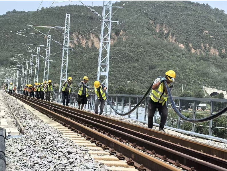 抢险现场夜黑如墨、黄泥成泽,各抢险小队争分夺秒、攻坚克难。截至8月13日18时,经过昼夜接替施工及运用无人机牵引架线,目前已组立及整正电力杆25根,完成包西线6处10kV自闭电力线路的抢修,共计5.6公里10kV电缆和5.1条公里10kV跨河架空线的作业任务,包西铁路和甘钟铁路已恢复正常运输秩序。