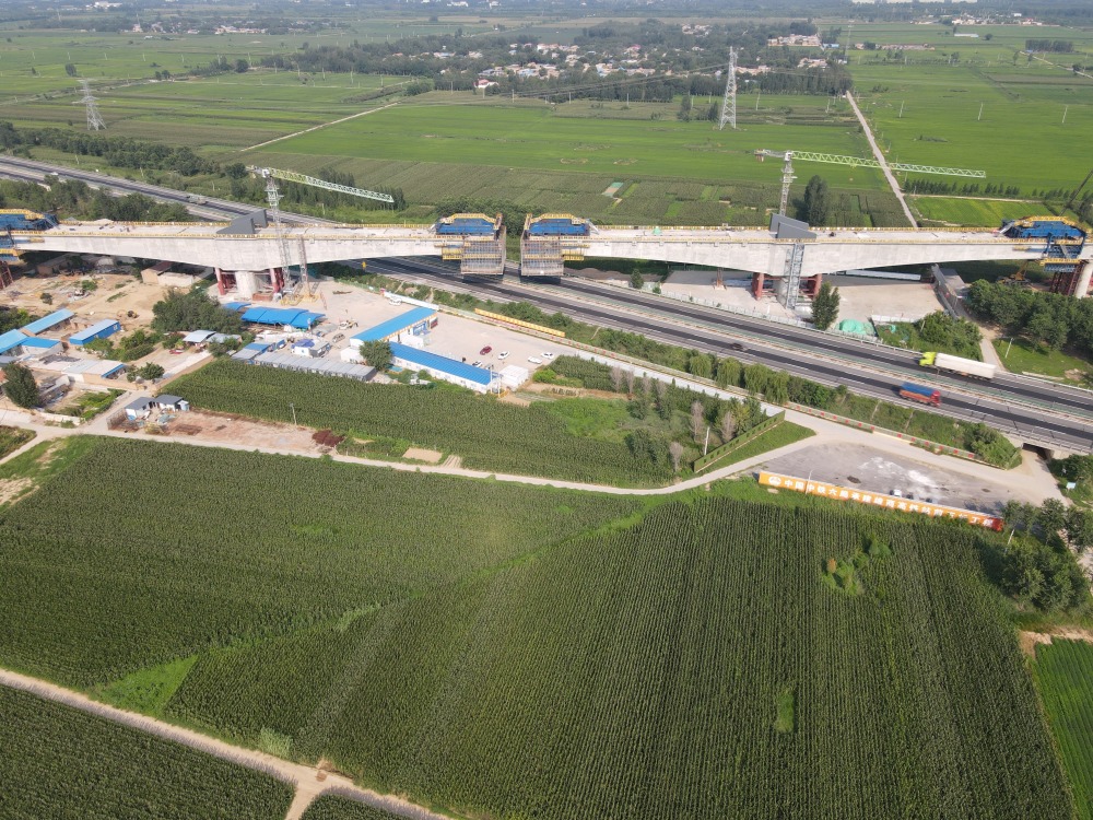 行车走在雄商高铁衡水段沿线,大致呈南北走向的桥墩依次排列,它们如同哨兵一样挺拔竖立。在平均高度约20米的桥墩顶端,架桥工作正稳步推进……