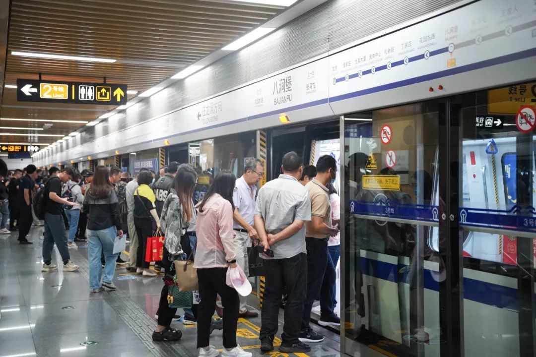 高峰期2、3号线四个方向列车在换乘站八涧堡站的行车间隔保持一致,有效缓解个别车次间换乘客流拥挤的情况。