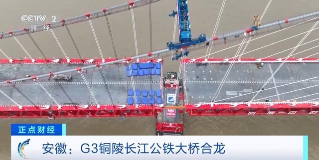 (央视财经《正点财经》)8月27日,在安徽,正在建设中的G3铜陵长江公铁大桥成功合龙,这是世界上的首座双层斜拉——悬索协作体系大桥。