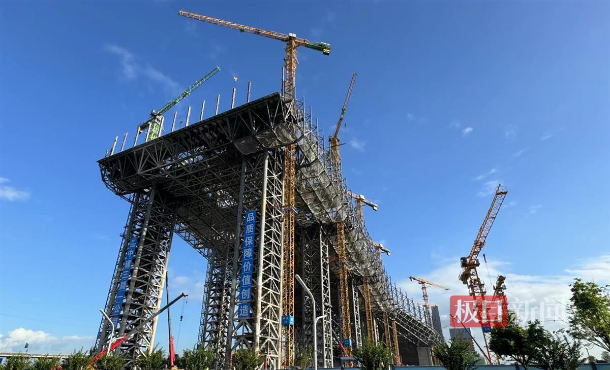 项目整体利用钢结构塑造“蓝鲸跃海”的优美曲线造型,用钢量达到4万吨。建造过程采用“一模到底”技术,以深化模型驱动钢构件加工、生产以及预拼装。安装时,现场管理人员采用三维空间定位技术对钢结构安装定位、提升卸载进行智能化高精度模拟和监控。