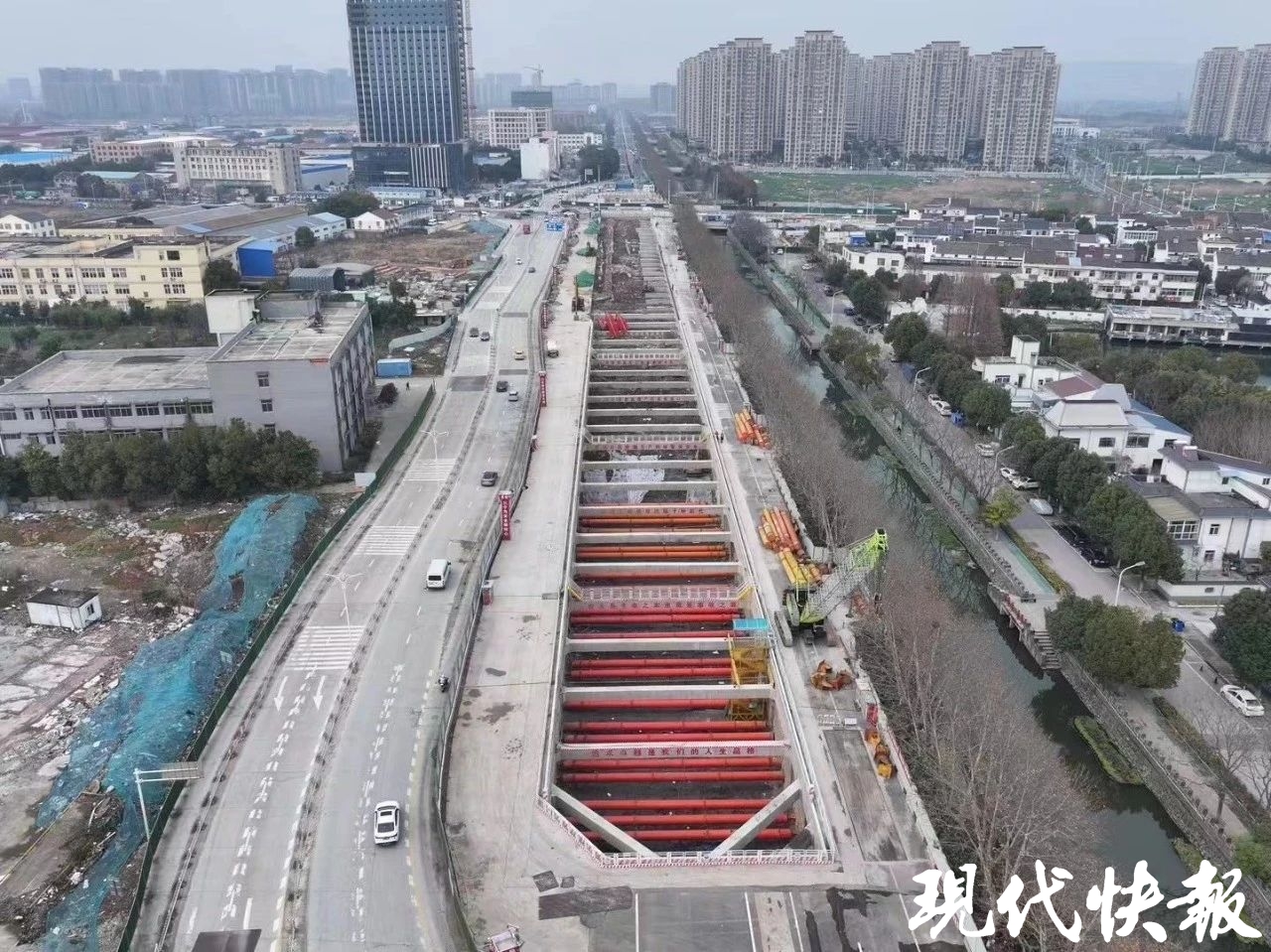 作为超长车站又临河临路,秣陵站要面临诸多施工难点。比如:周边管线错综复杂,对现场施工进度有一定影响;秣陵站为超长车站又穿越现有繁忙道路,先后分三期交通疏解,次数频繁、安全保证要求高,施工难度大。