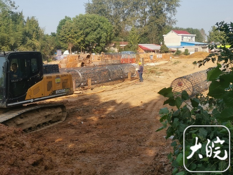 大皖新闻记者注意到,施工现场只有两驾驶员和两名施工人员,还有一名焊工正在进行钢筋笼焊接作业,两段“个头”巨大的钢筋笼已经焊接完成,另外两段钢筋笼长度较短,都堆放在空地上。“我们钻孔进度很快的,天热也要抓紧施工,争取早点把大桥建好。”一名工人师傅说。