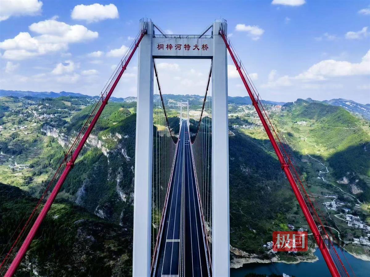 9月13日,由中铁开投投资、中铁大桥院设计的全球首座高低塔采用无桩基础设计大跨度悬索桥,贵州金仁铜高速公路全线跨度最大、施工最难的控制性工程,主跨近千米的科技攻关型桥梁——桐梓河特大桥建成通车。