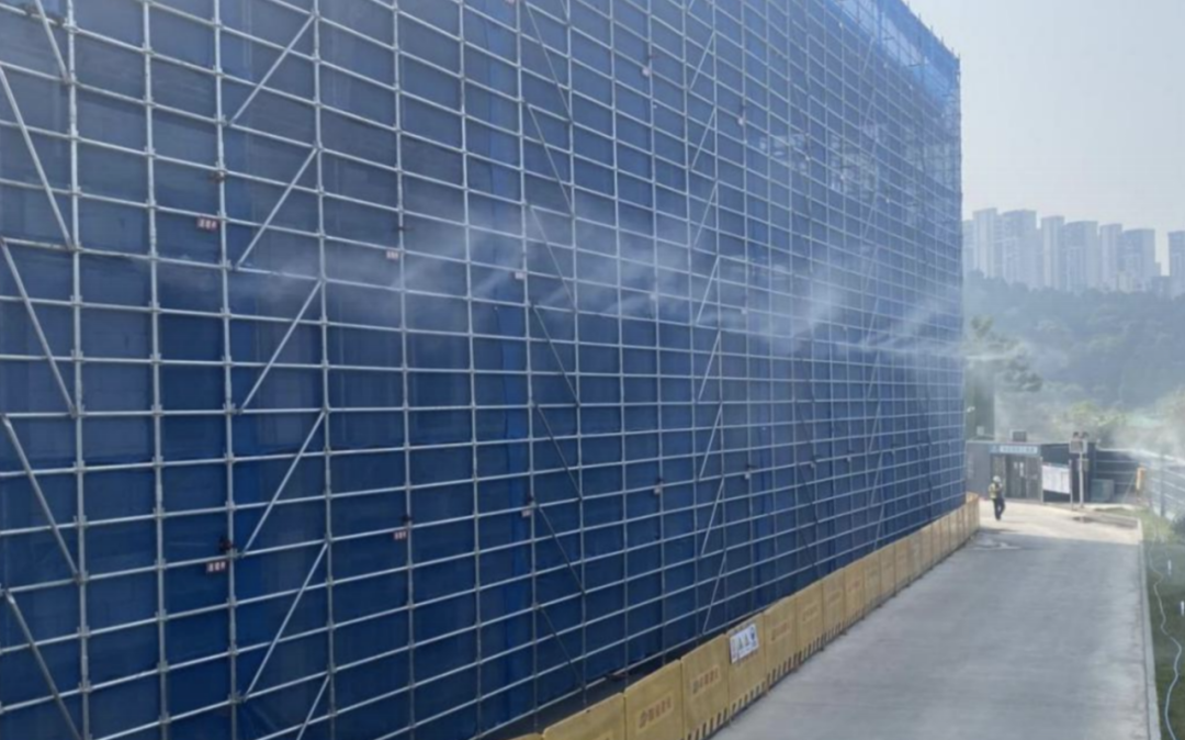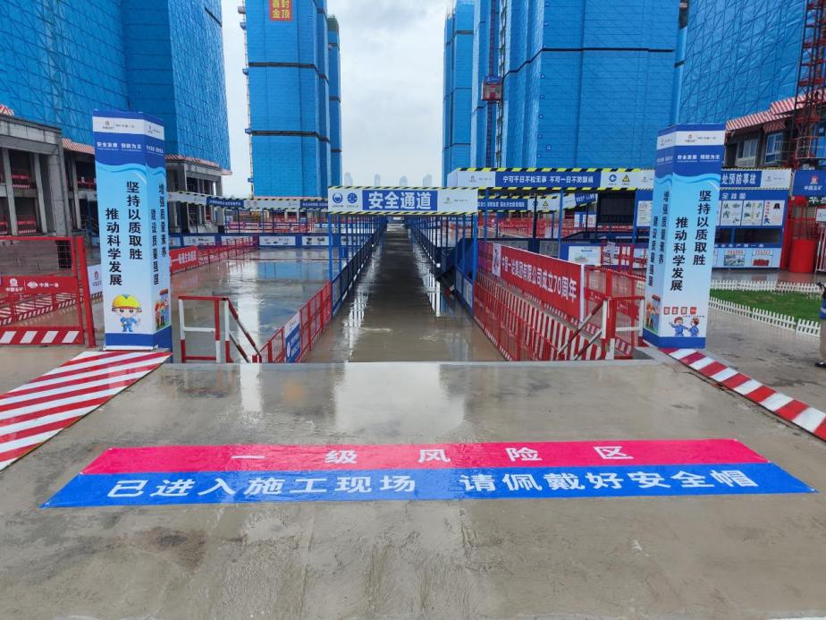 项目现场管理规范有序,场内道路、绿化、雨污水管网采用永临结合。施工围挡、外架设置智能喷淋系统,施工道路采用人车分流。施工现场大门处、作业区设置远程广播系统,循环播放安全注意事项。