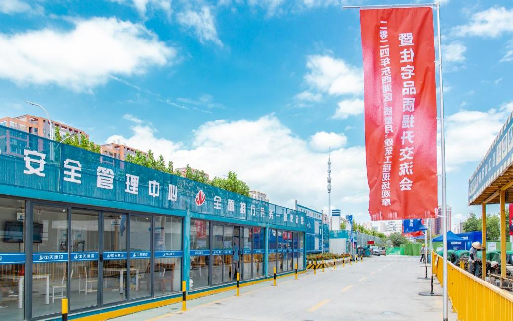 现场实施安全文明施工标准化管理,脚手架使用承插式盘扣架加冲孔钢板网,楼层临边、洞口采用新型装配式定型化防护及红外感应语音提示牌,落实各种安全带系挂措施,人员进场实施一站式服务。