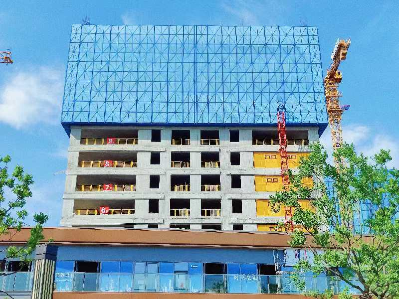 施工现场管理规范,文明施工、现场安全防护等标准化程度高,围挡设置整洁、牢固,外架立面采用冲孔钢板网防护。