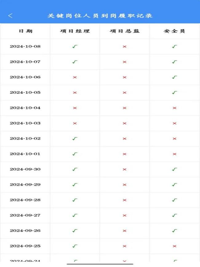 检查期间,项目经理、项目技术负责人未在岗履职,无打卡记录。现场专职安全员配备不足(仅配备一人),无现场打卡记录,无施工安全日志。监理通知单问题整改不及时。
