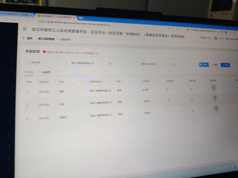 采用全钢爬架+铝模防护建造方式,使用人脸识别实名制门禁、智能喷淋、塔机与施工升降机监测等智能监测设施设备,实现施工过程数字化动态监管。专职安全生产管理人员佩戴安全生产检查记录仪上岗并留存记录。