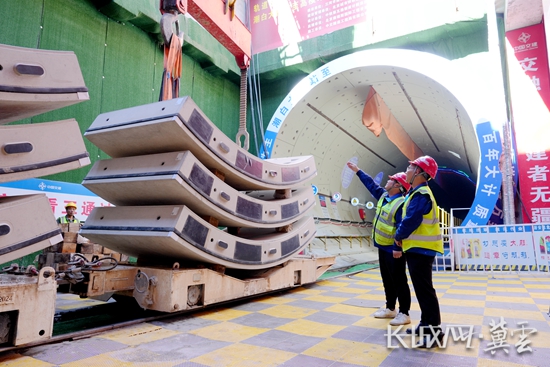 施工人员检查吊运地铁管片。长城网·冀云客户端记者 武海笑 摄